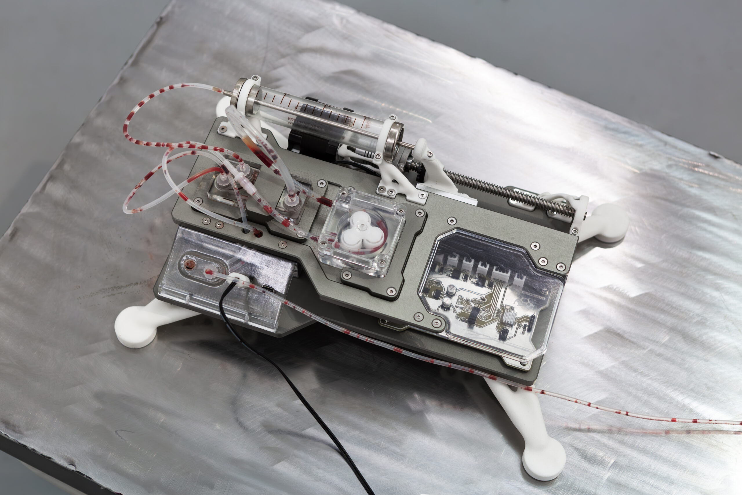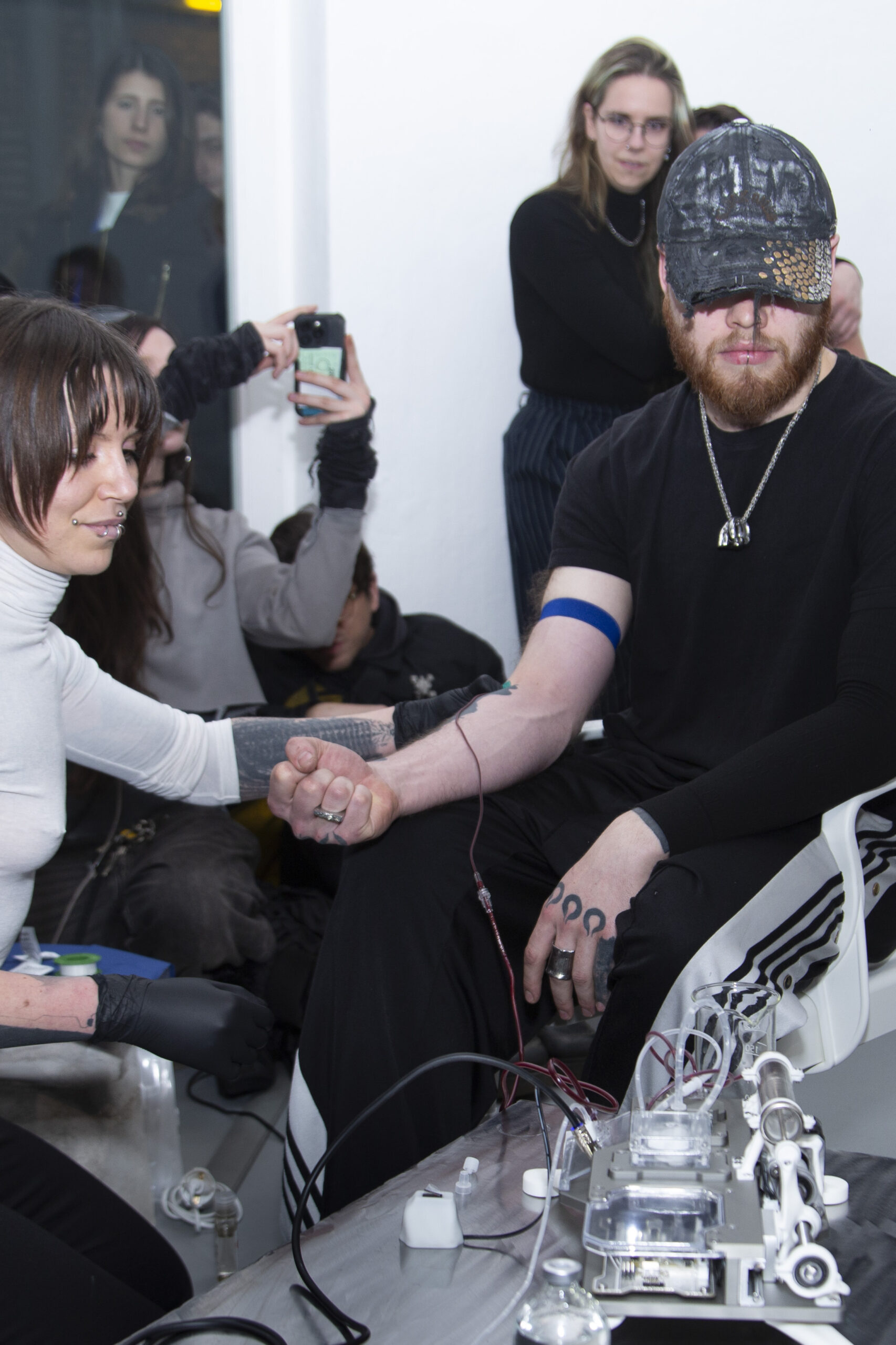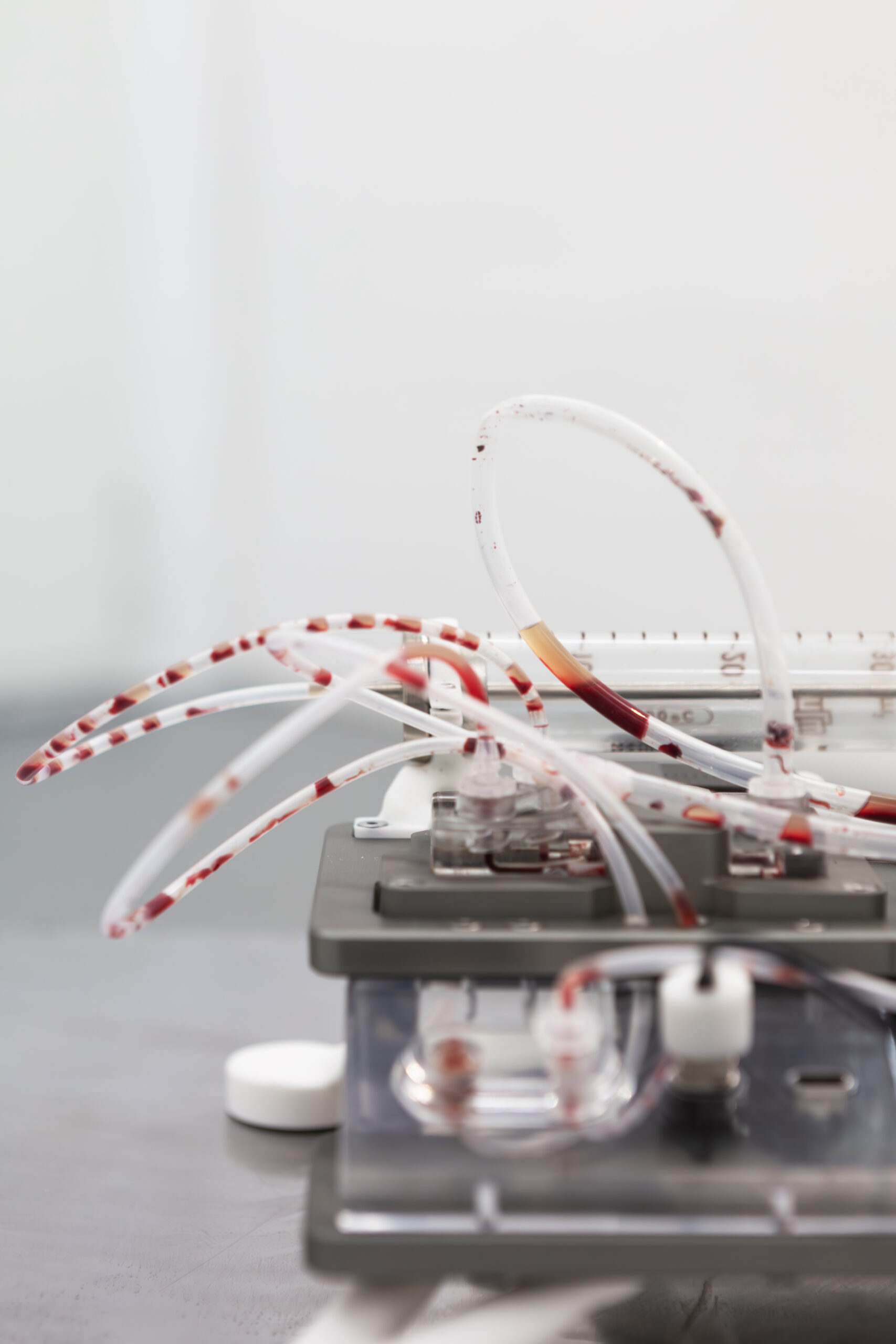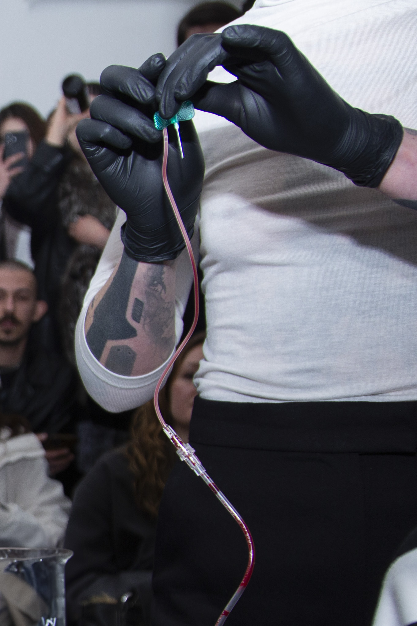 Iron Stream is a performative installation that examines the blood industry as an opaque capitalist infrastructure where technology, morality, and war intersect.